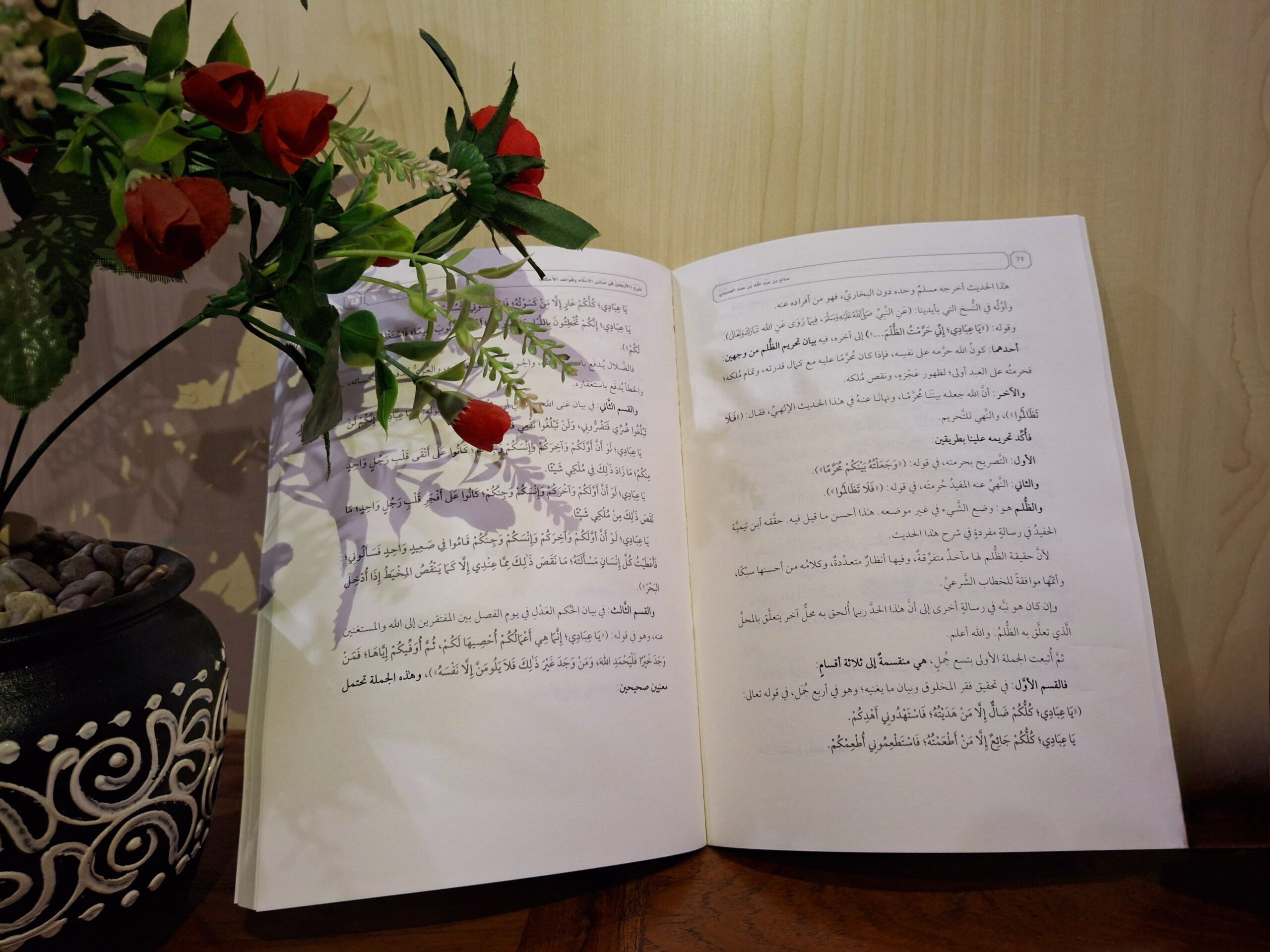 Kitab ini merupakan penjelasan hadits Arba’in An-Nawawi yang disusun oleh Syaikh Shalih bin Hamad Al ‘Ushoimiy. Kitab yang sangat penting dipelajari para penuntut ilmu karena mengandung inti ajaran islam. Mulai dari perkara akidah, fiqih, akhlak, maupun adab. Maka tidak aneh kalau banyak ulama setelahnya mengarang syarah 42 hadits tersebut. Hal ini menandakan keberkahan ilmu yang diajarkan Imam An Nawawi Rahimahullah.